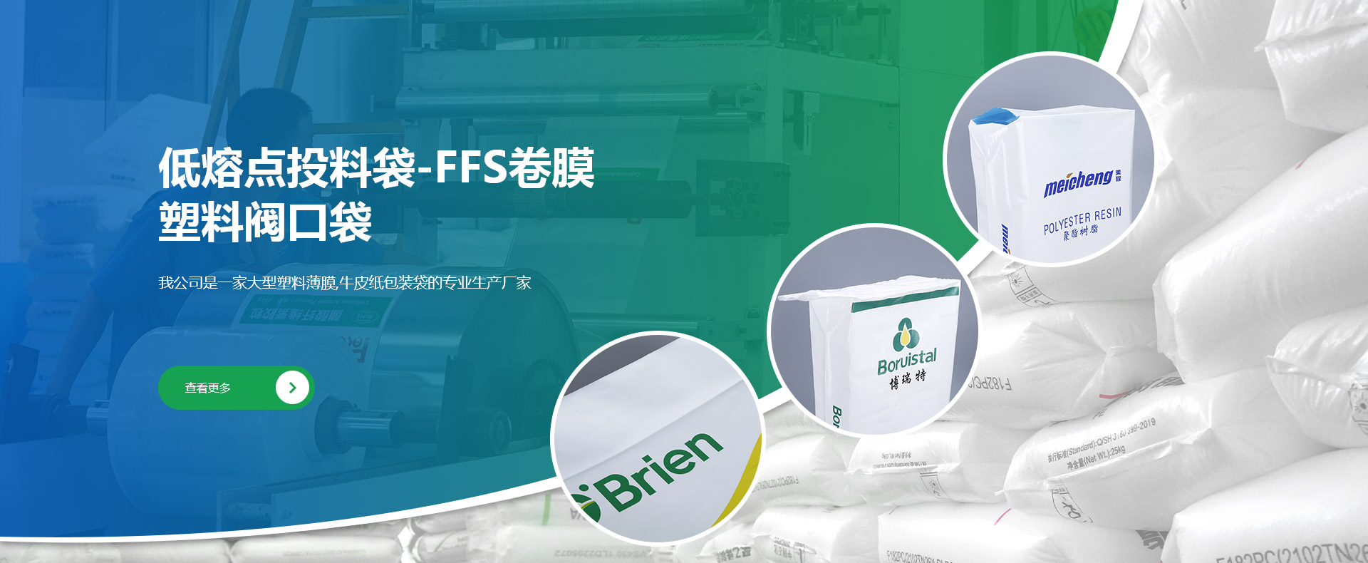 公司創建于1998年,是專業研發、生產和銷售低熔點橡膠投料袋、EVA閥口袋、LDPE多層閥口袋、EVA/LDPE低熔點膜、橡膠包裝膜、FFS重包裝袋、普通塑料包裝袋、牛皮紙閥口袋等產品的綜合包裝類企業